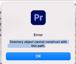 Premiere Pro 22.3 Error Directory object cannot construct with this path.