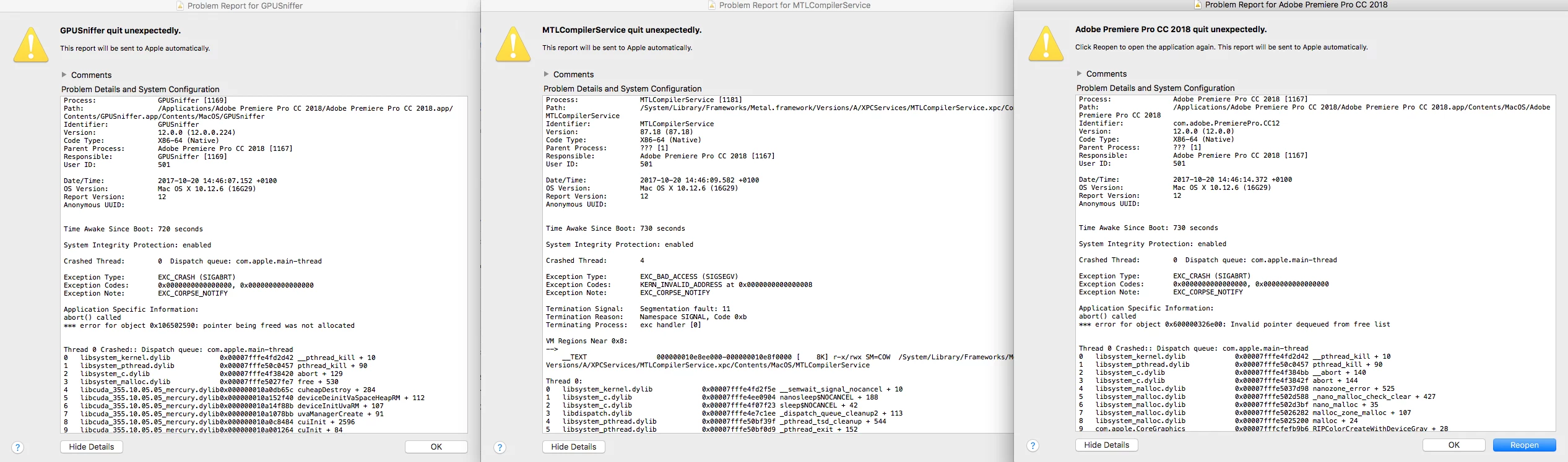 Premiere Pro CC 2018 crashes on start — MTL Compiler