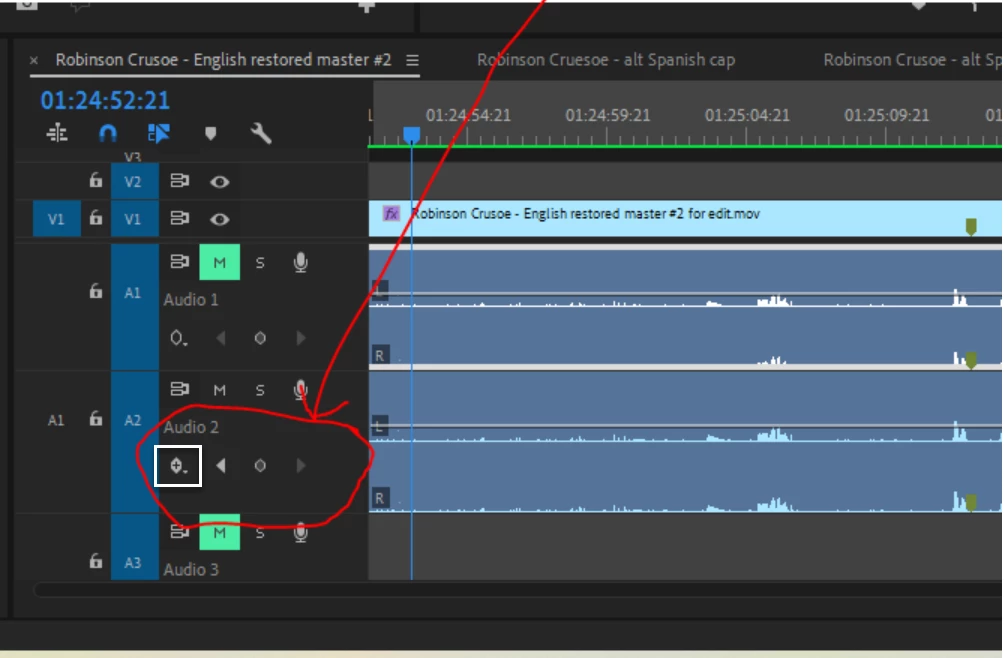 I was able to set a few key frames on track 2 of a project but now I can't edit, even select the track, it appears to be locked up. I assume I need to turn off the key frame function but I can't figure out how to do that. I feel like a dummy and need help. Here is a screen shot showing the audio timeline and pointing to the key frame tools. Hope someone has an answer! Thanks a million!