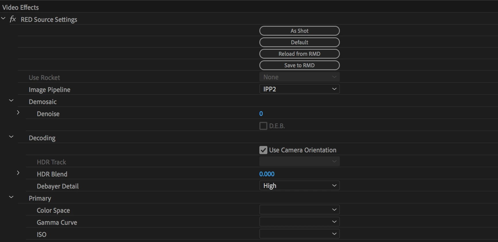 Premiere Pro Color Space & Gamma Curve Dropdowns in Red Source Settings are Empty