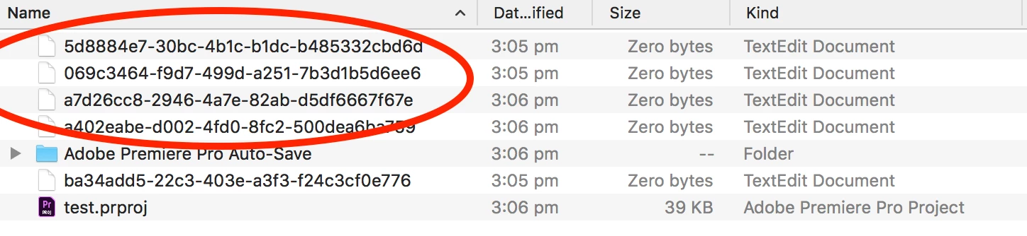 Premiere Pro Creating Weird Zero KB TextEdit files