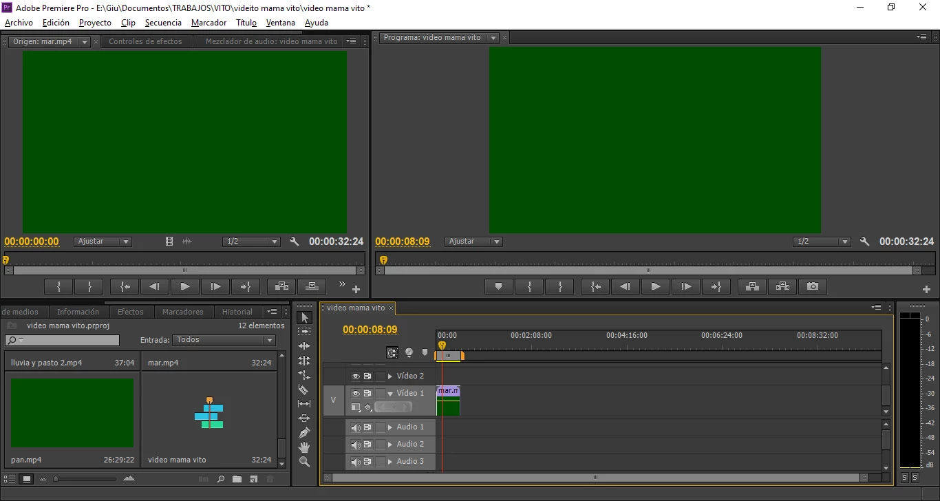 Hola! Escribo porque de un día para el otro me sucede que al importar archivos (creo que el problema es con mp4, pero no estoysegura) a Premiere pro se ven verdes y en la línea de tiempo, en la parte superior, aparece una línea amarilla, como cuando no se encuentra el archivo. Adjunto imagen para que se entienda mejor lo que quiero decir.