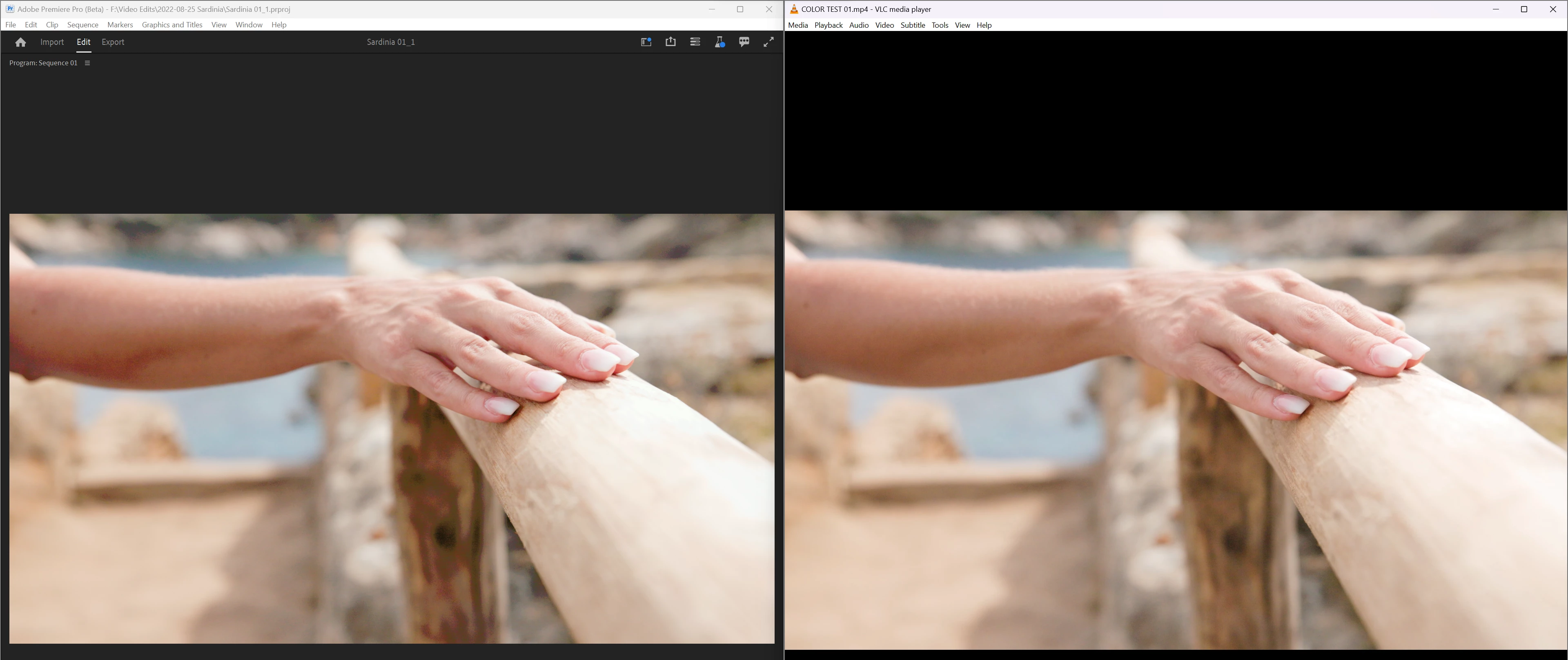 I've made sure that all the color management settings in Premiere are turned on, but the issue persists even if I try turning them off. To illustrate the problem, I've provided an example below, where the left side displays the footage in Premiere Pro, looking terrible, and the right side shows the video after export, looking much improved. The shadows, in particular, are affected.
