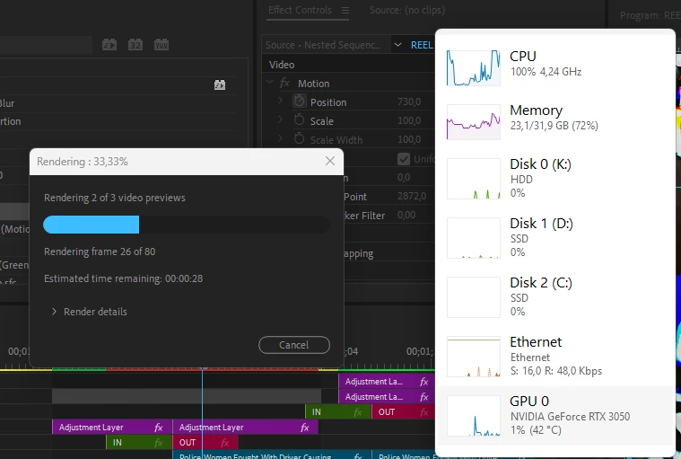 Premiere pro rendering in to out my transition EFFECTS using Cpu =100%, Gpu=0%