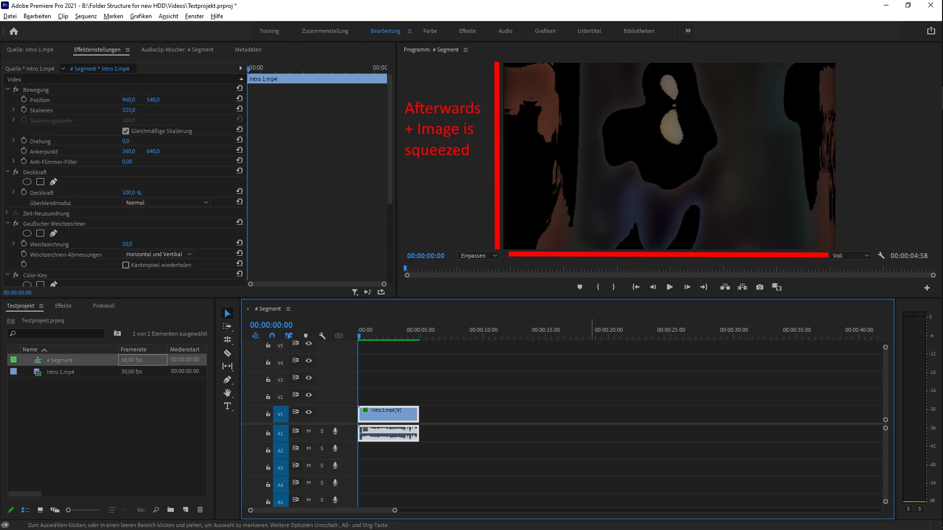 Is there any way to render the selection and keep the individual clips from distorting? What's the cause of all this? Glad if anyone can help! My sequence settings are below, lemme know if there is anything else you need.