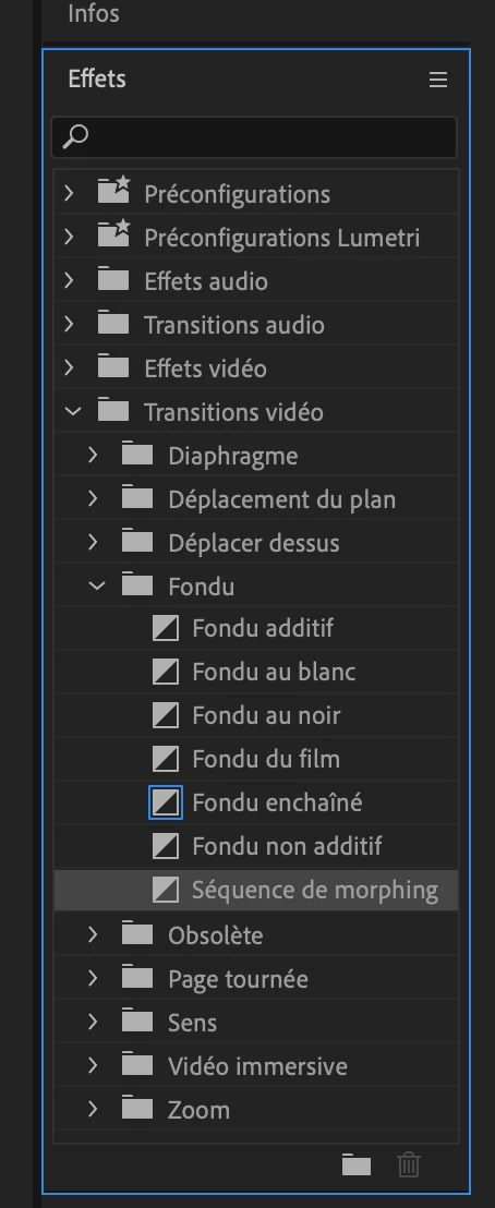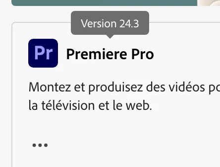 Premiere Pro, plante toujours si j'ajoute une séquence de morphing dans les transitions vidéos. Je l'ai même désinstallé et reinstallé la problématique est encore là. Voici en image la version de Premiere Pro, la transition vidéo et la version de mon iMac.