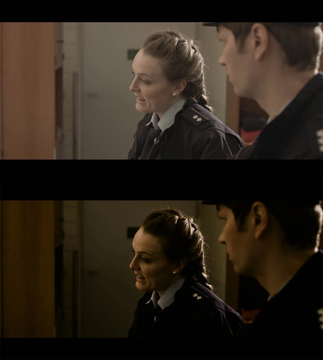 Reduce the effect of correction in dark areas as in the screenshot (Sat/Sat). This means that your grade or LUT will not affect the dark areas of the image. Then adjust the tone of the skin with a shade (Luma/Sat curves) and make the skin lighter.