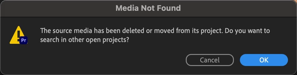 Productions: source media has been deleted or moved