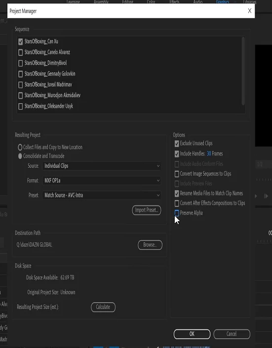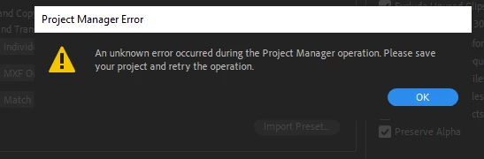 When consolidating a few seuqences in a clients project we get the Unkown error from project manager.