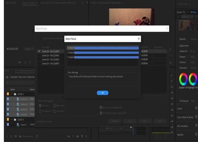 PROXIE AUDIO CHANNEL ERRORS: Proxy Media and Full Resolution Media must have matching audio channels