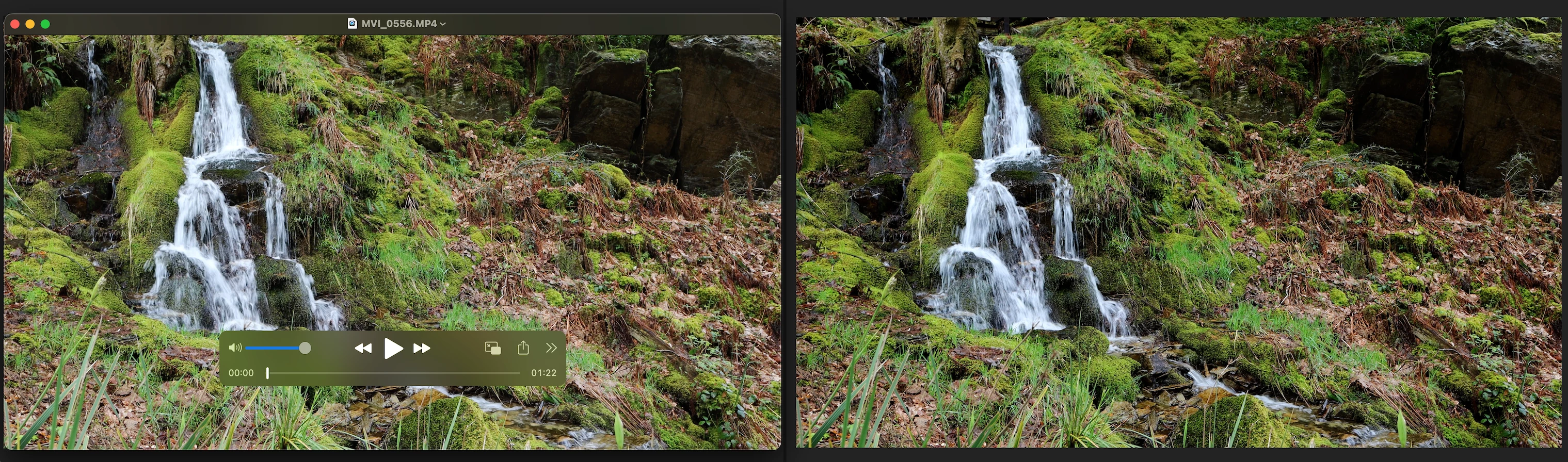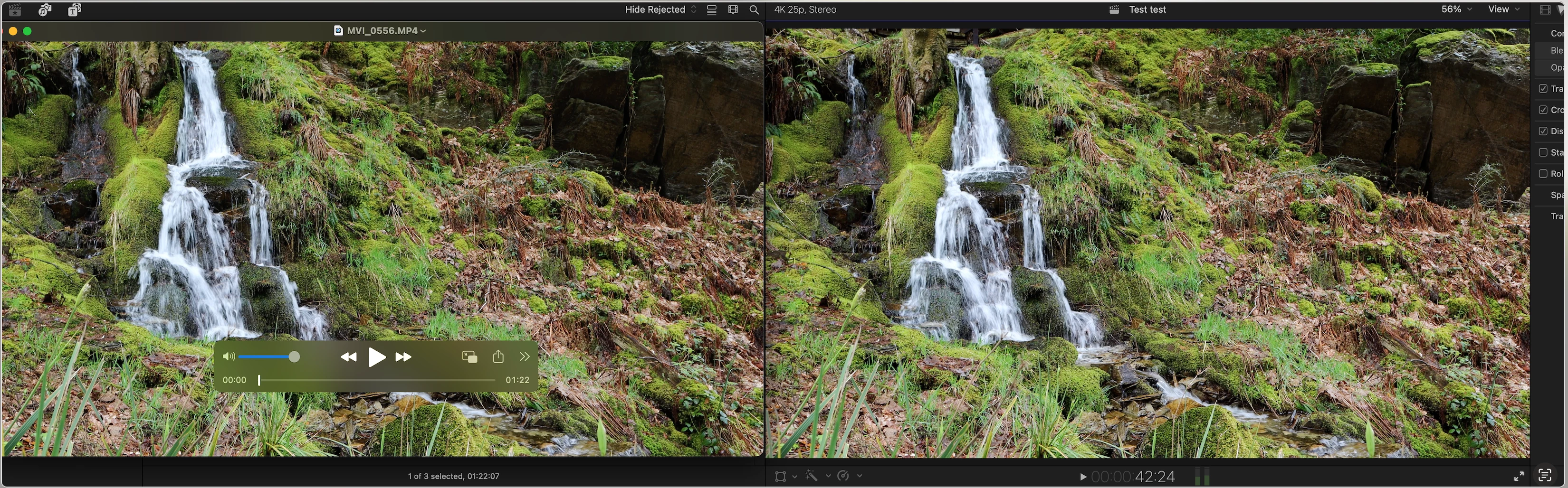 Same Mac, same time, same clip... no adjustment layers, just that on the left it has been opened in Quicktime Player and on the right it's in Premiere Pro. But both on a Mac. Look at how Premiere Pro has over darkened the video file. Look at the rocks top right.