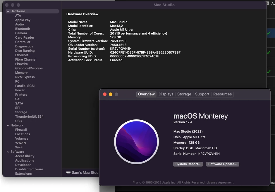-Mac Studio, M1 Ultra, 20 Cores (16 performance and 4 efficiency) 128GB