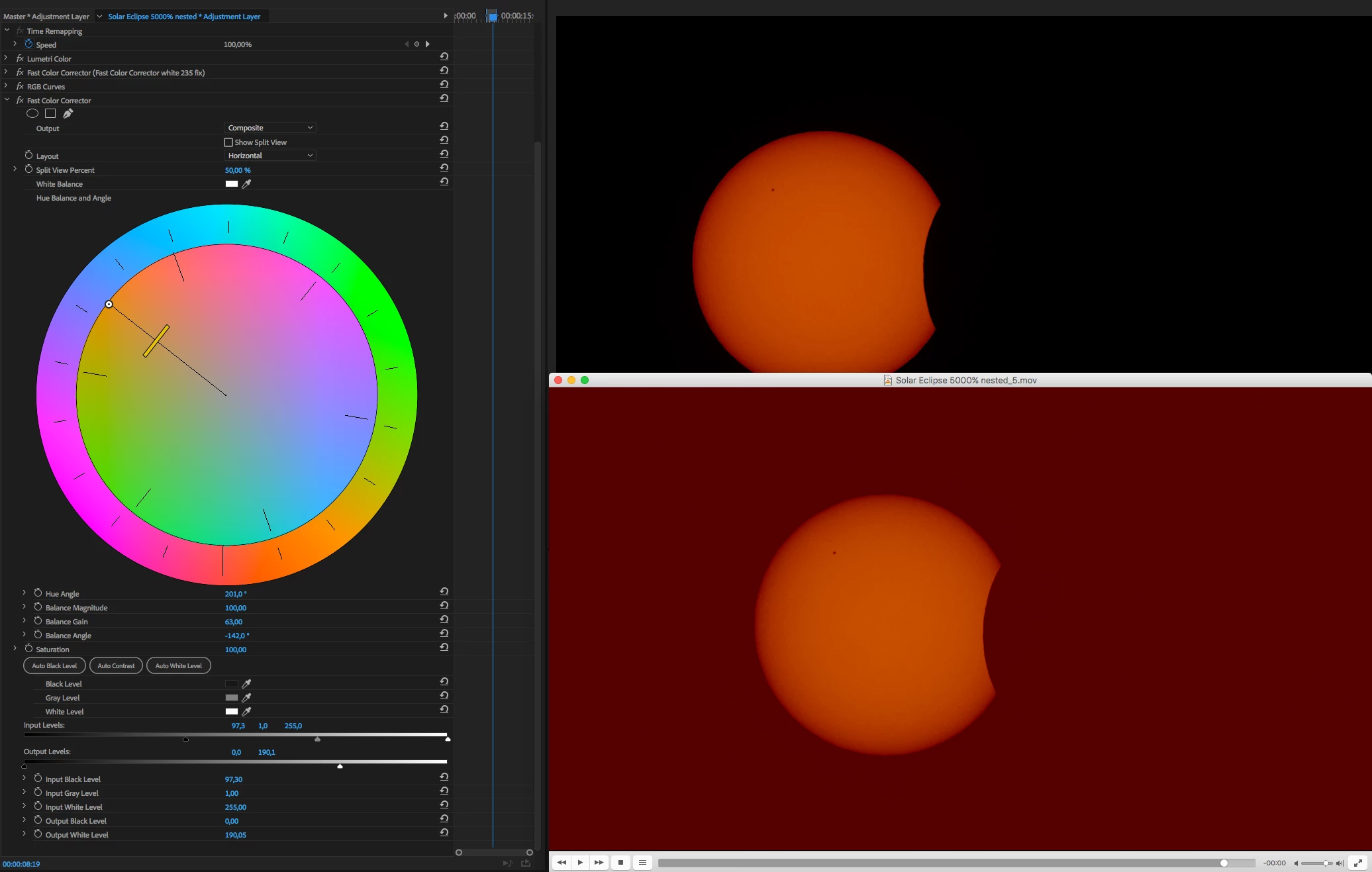 As you can see in the picture attached when I try to render it out the fast color corrector completely messes the render. I've created a strong color correction for a solar eclipse (original clip is b&w of course). I would gladly recreate this in Lumetri but I'm not getting anywhere near the vibrant orange color I'm getting with fast color corrector.