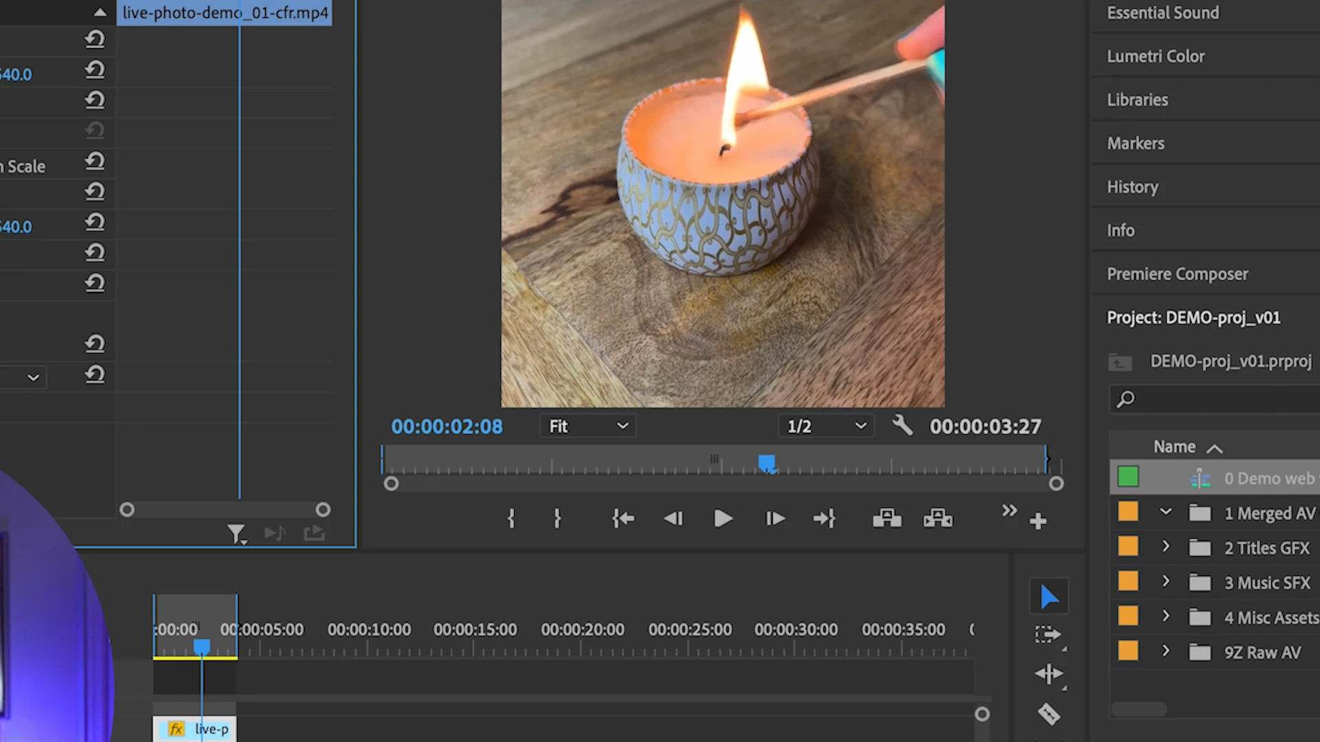 I'm experiencing a glitch of sorts in my edit project in which the video suddenly scales up/zooms in on the footage, then jumps back out to the set scale size. The issue shows up in the Program monitor during playback and appears even when I scrub through the timeline frame-by-frame. The scale jump lasts for about 8 frames before scaling back to normal. Here's a screenshot of before the jump (#1) and during the jump (#2):