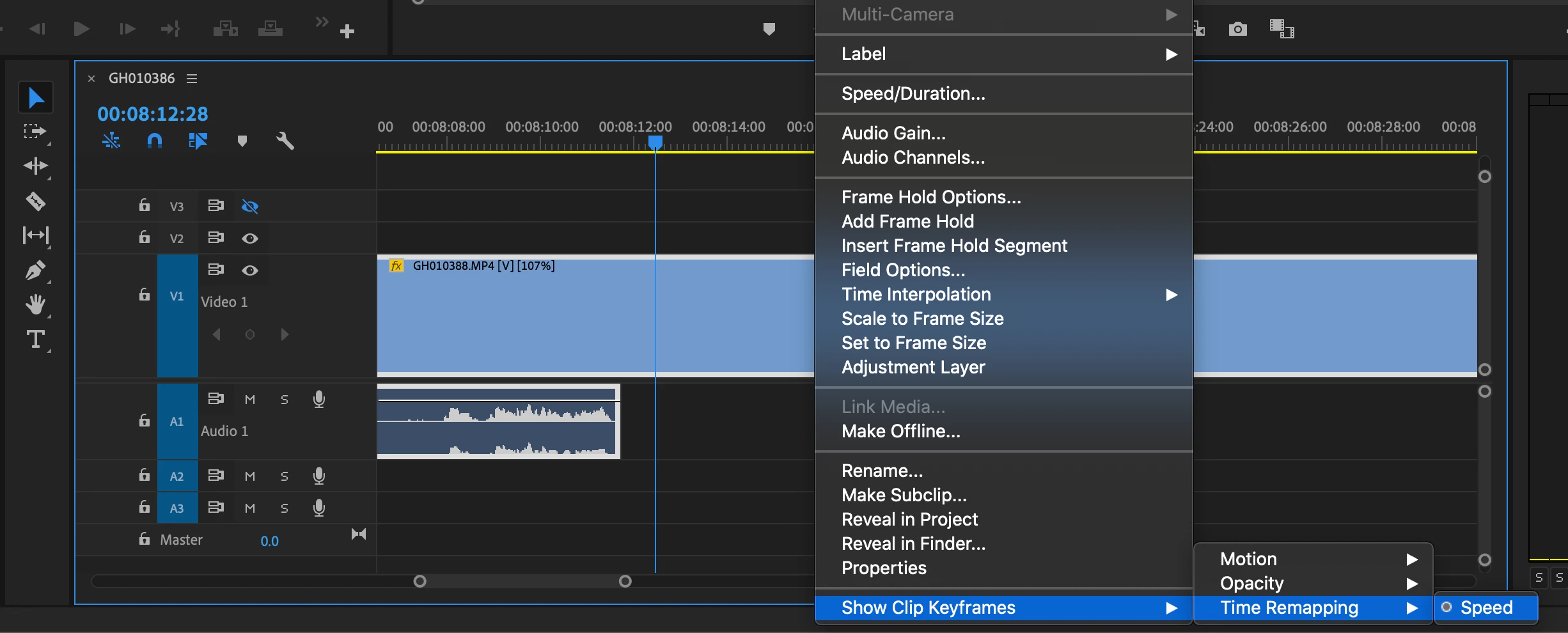 Very new to Premiere Pro and speed mapping but I've managed to make this work on other parts of my video from tutorials; however now when I go to turn on speed remapping and look for the line to adjust speeds on each clip it's just not there even though according to the menu it says it's on.