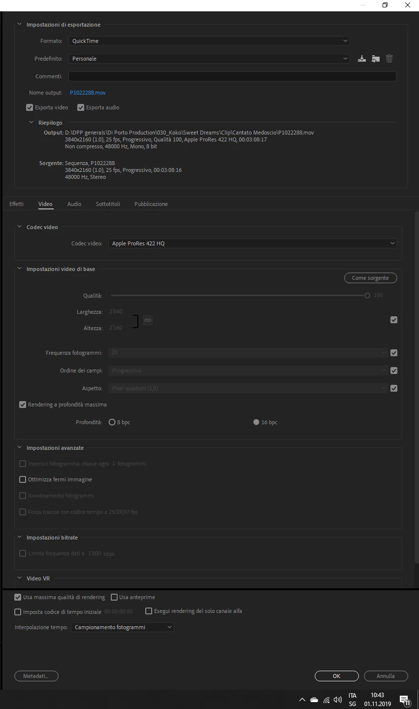 i've imported this clip to apply lumetri color, red giant denoiser 3 and some noise overall then i've exported it in proress 422 4k. Now i've iported the colored and denoised clip in pramiere again to start assembly my video but i found the clip totally ruined by a strange cross in the middle for the entire clip. Does somone have any knowledge of what the heck is happenig here?