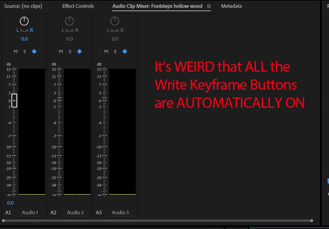 The Write Keyframes Button is automatically ON for each audio track when I open it.