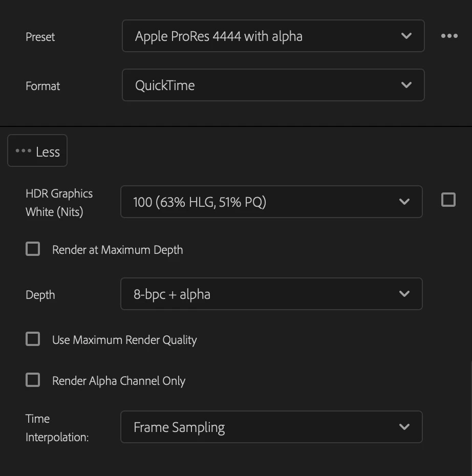 Track matte is rendering black instead of transparent, ProRes 4444 + alpha