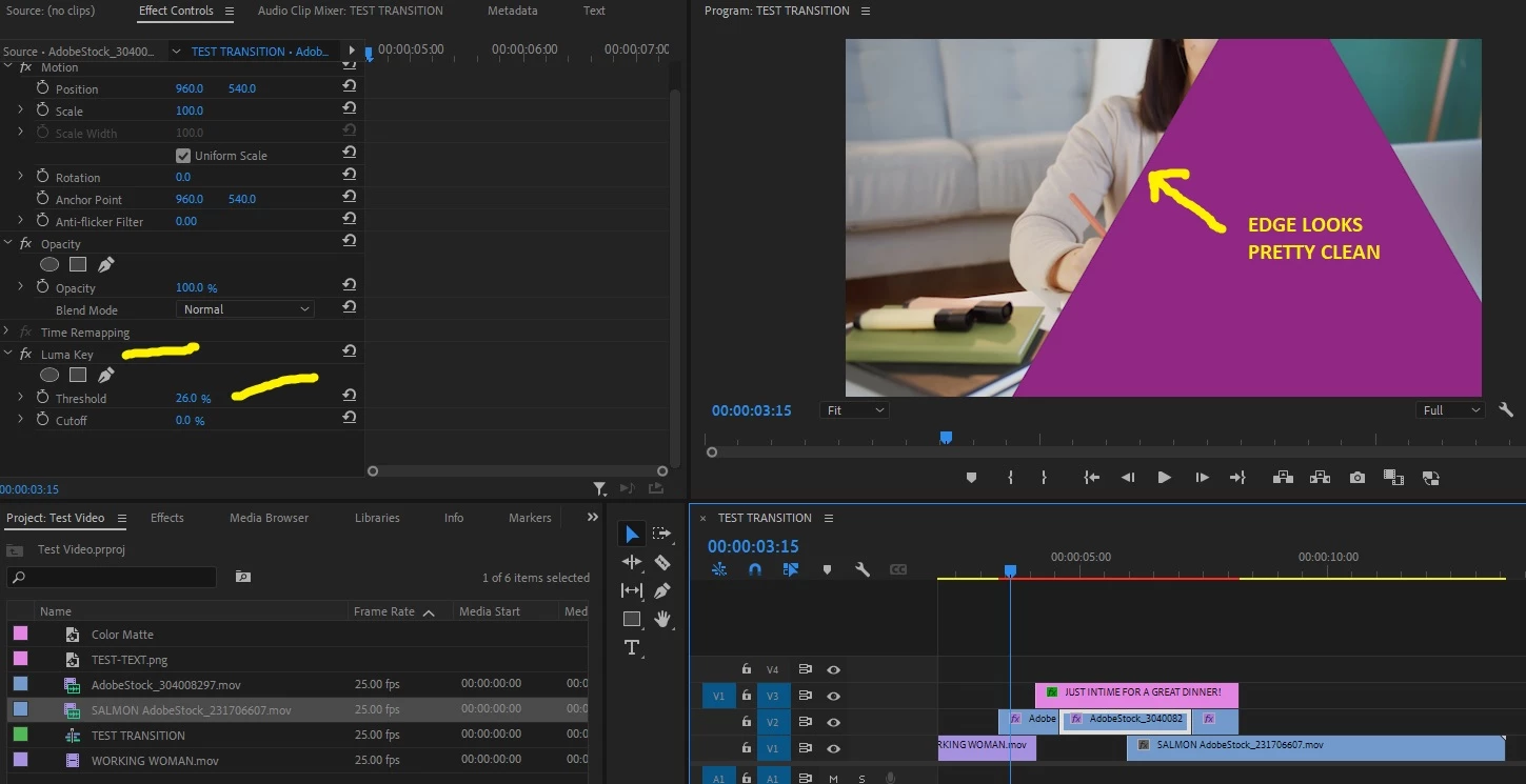 Using luma key for video transition
