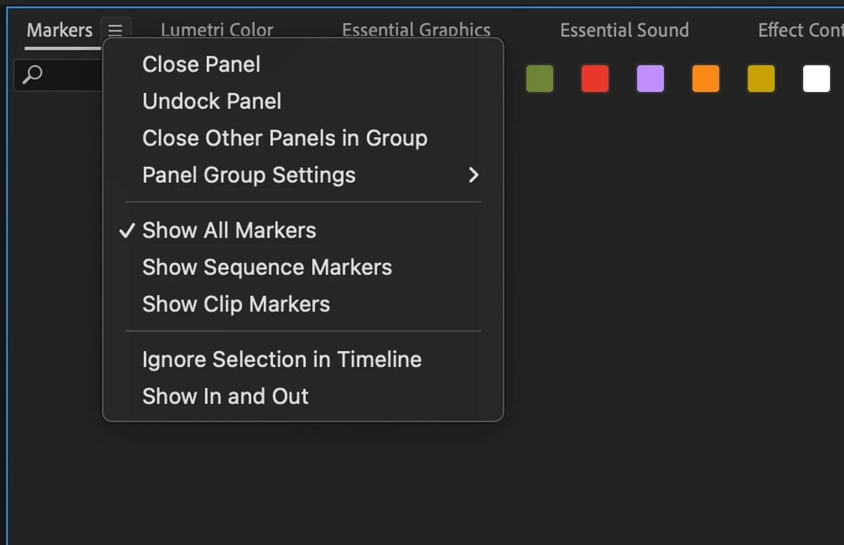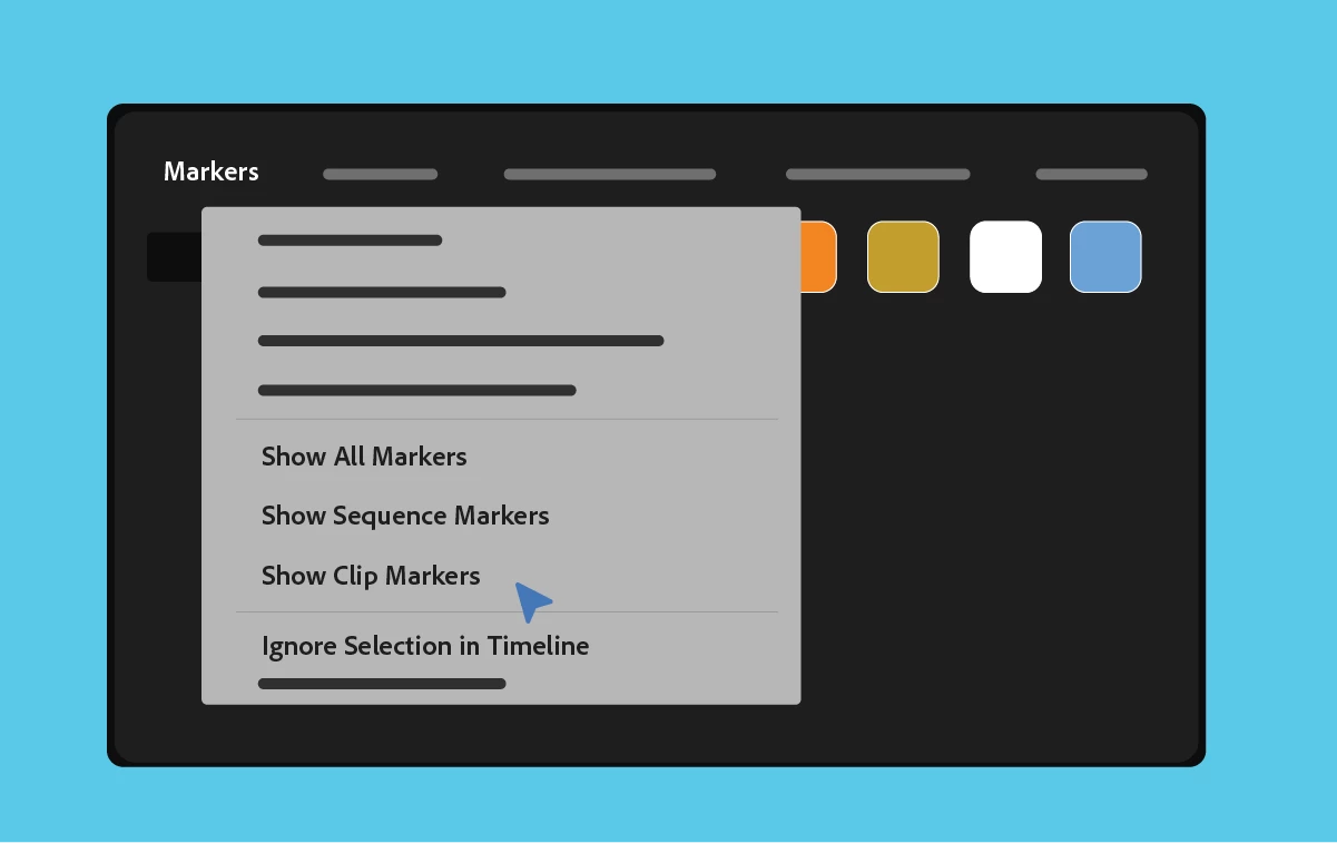 The Marker panel now includes filter options to Show All Markers, Show Sequence Markers, and Show Clip Markers. Choose any filter to view the markers most relevant to your current work. Select Ignore Selection in Timeline to filter markers regardless of which track items are selected in the timeline. With these behaviors, staying organized and finding precisely what you need is more manageable.