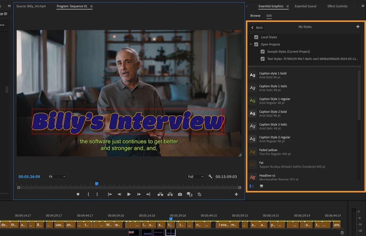 Premiere Pro now also includes a brand new style browser. Effortlessly apply and repurpose your styles to captions and graphics across various projects, streamlining your creative workflow like never before.