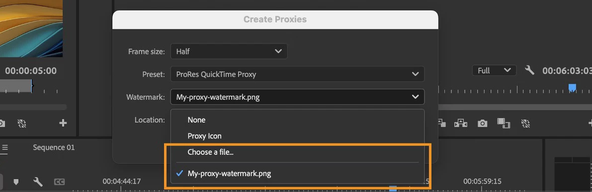 Mark proxies with a custom or default watermark inside Premiere Pro.