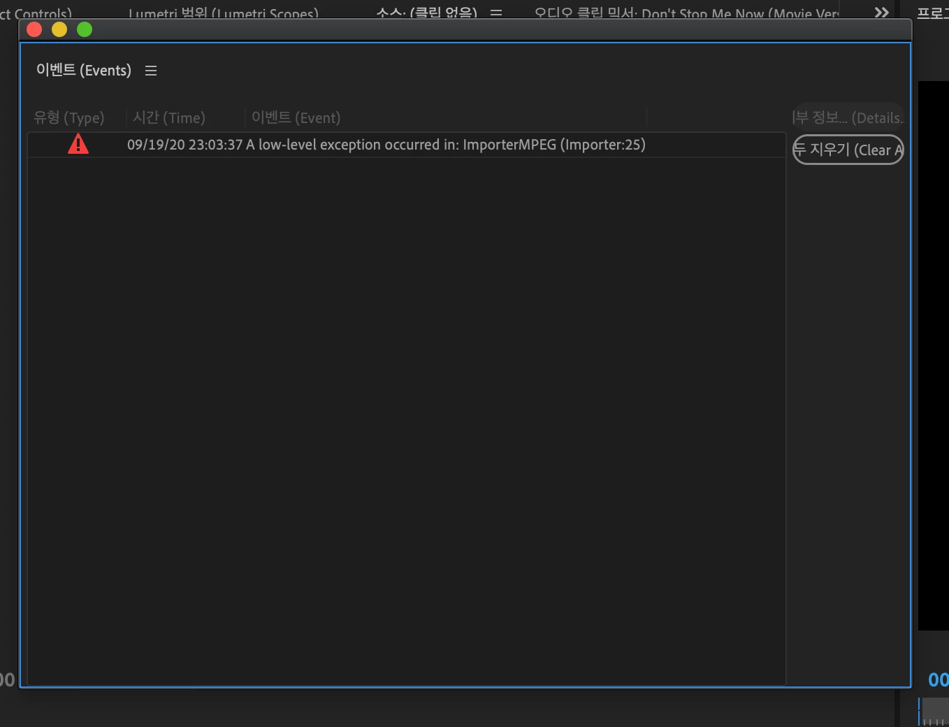 An error occurred while importing the file; 'low-level exception' suggests that no additional error information was passed from the Importer, to PPro.