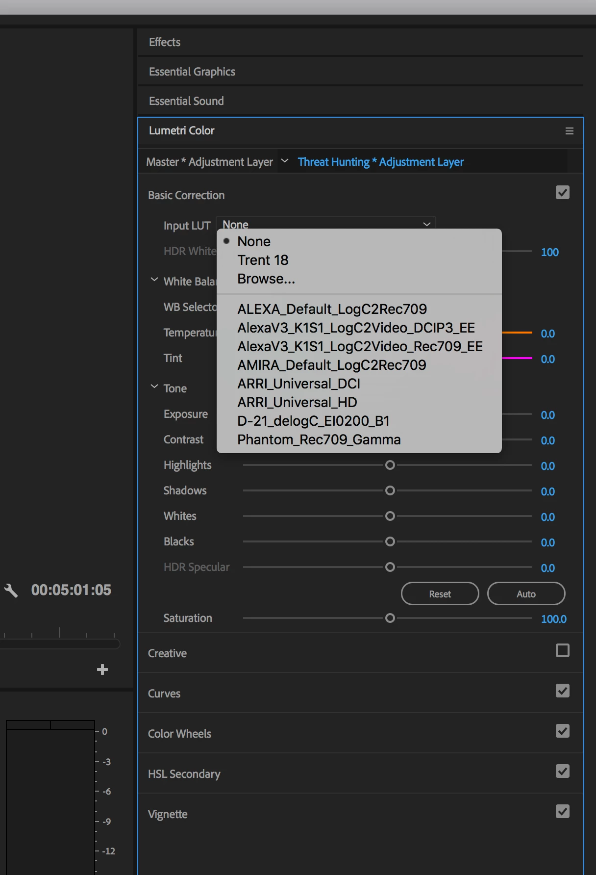 No. As stated, wgmhstvshoes in the Lumetri Basic tab, and the Creative tab as well, are LUTs or Looks.