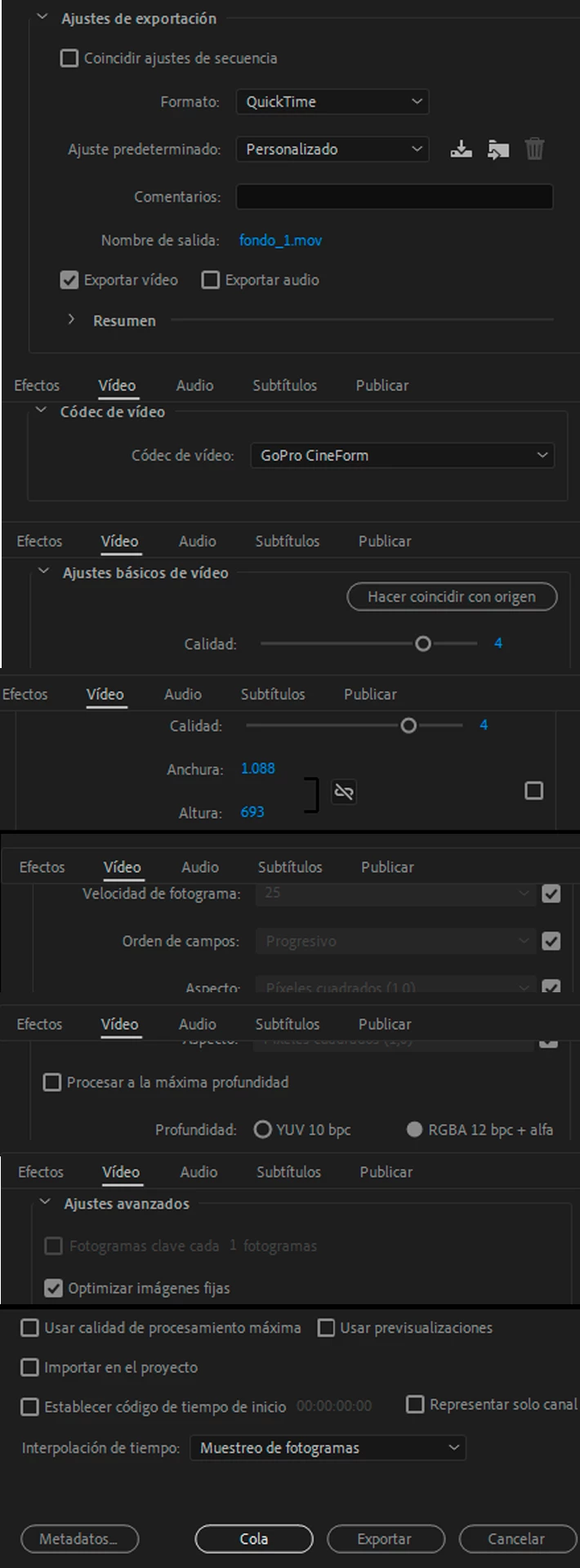Here are the settings i used when i exported the file in .MOV (the exported video ended up being 4 GB):