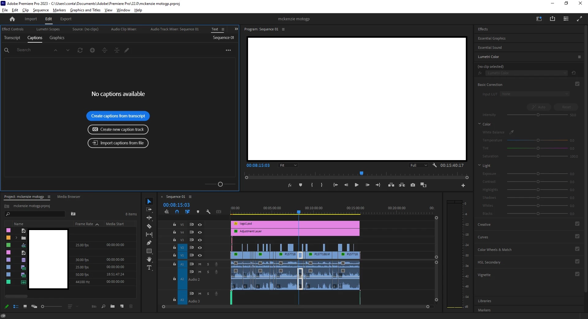 Now when I go to the text menu and try to transcribe my sequence it instead says: "Create captions from transcipt". This has a very different outcome.