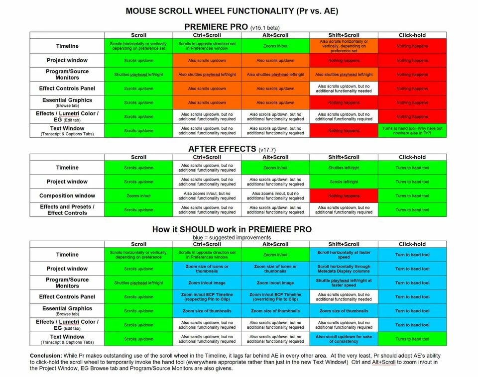 Please see the attached charts which compare scroll wheel functionality in Pr vs AE, and suggests how things could be improved in Pr.
