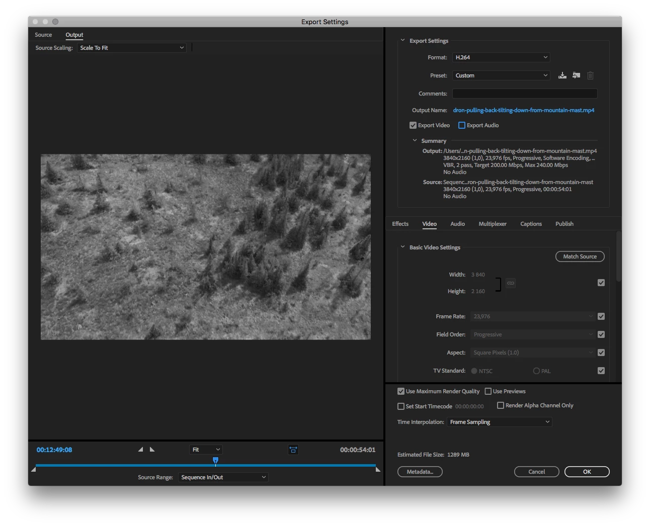 Export settings from Media Encoder.