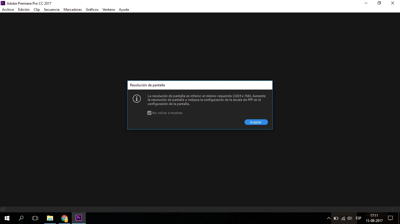 La resolución de pantalla es inferior al mínimo requerido (1024x768)