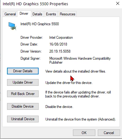 PR 2020 compatibility report: Unsupported Video Driver Intel HD graphics 5500