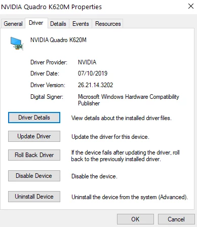 Vidéo NVIDIA Quadro K620M v.26.21.14.3202