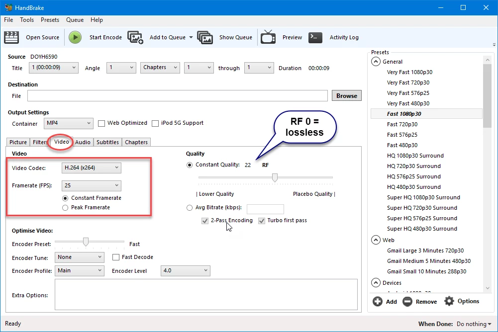 Screenshot from Ann Bens was very helpful however there are many more additional settings in the handbrake that you can modify.