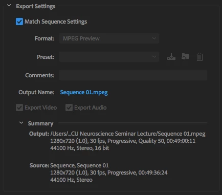 I have 720p video shot on iPhone & I just want to swap out audio and trim. I'm a bit new to premiere, so matching footage, to sequence, to project, to export has me a bit confused.