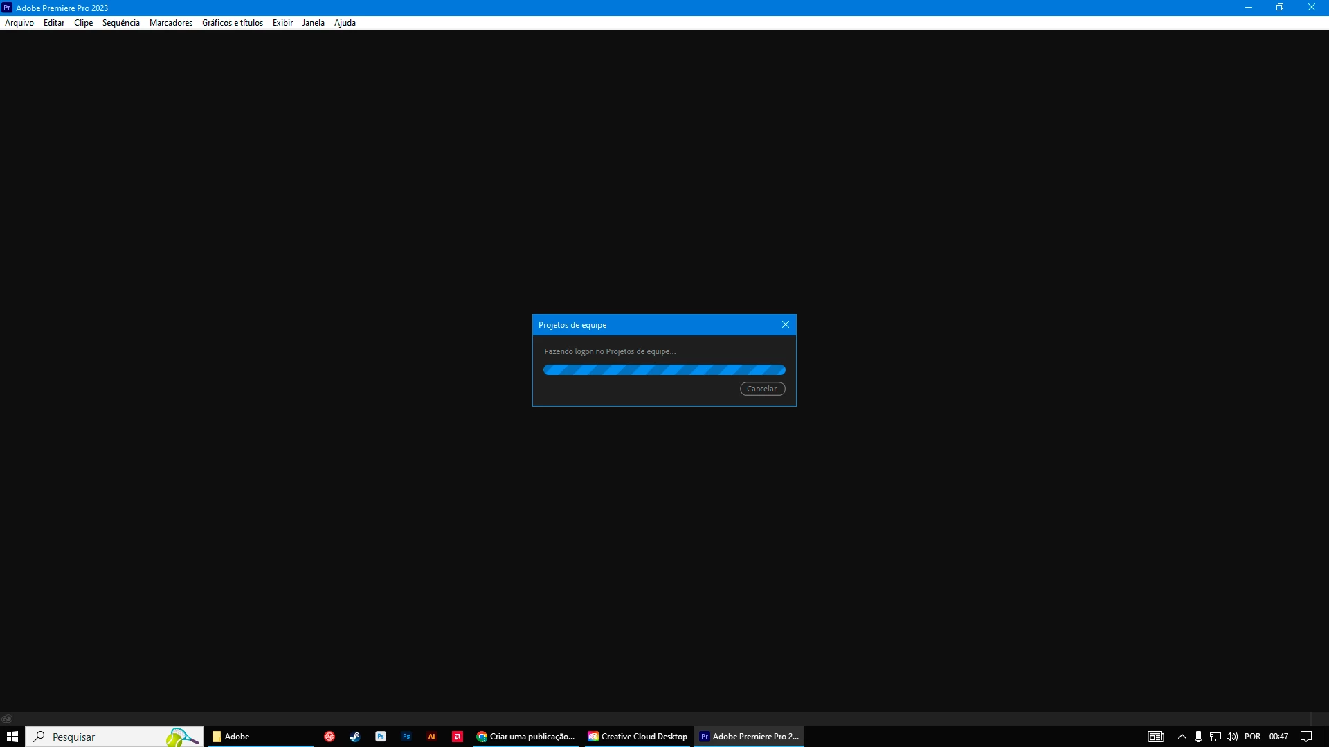 Já deixei por horas na tela de carregando que diz "Fazendo logon no Projetos de equipe..." e até agora nada, não sei oq fazer, preciso editar no Premiere Pro e o arquivo não abre de jeito nenhum...