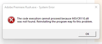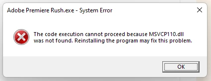 I am getting error on a Win11 machine when opening Premier Rush as shown below. I tried reinstalling. I also updated Win11 to latest and updated Nvidia drivers. Nothing fixes the issue. All other apps work simply fine except this one.