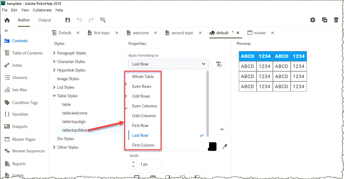 I created a new table and need to make the first and second row with the same shading color. I think RH 2019 only allows be to do this on first, even, odd, and last row, but not second row. How do I do this? Thank you for your help.