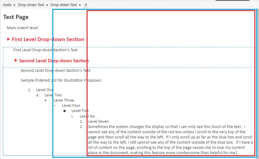 Actual (where I cannot see where I am at in an ordered list and can't read the full paragraph above the current indent level.
