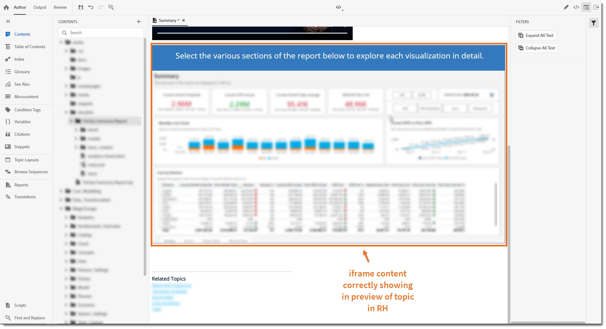 Good afternoon. I have Version 2022.5.28 and was wondering if anyone has successfully embedded Storyline output into an iframe. I have followed all the available instructions. Added the entire HTML5 folder to the TOC so it is included in the output. It works in the preview but once published, I get the topic content in the iframe also with the Robohelp site frame around it and no contents in the topic pane.