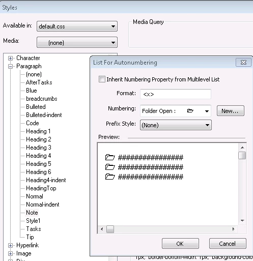 I am generating the multiscreen HTML5 help and am working on a new layout. We have been testing the layout in Chrome, Internet Explorer and Firefox, and everything seems to work well with one exception. One of the paragraph styles is a list that uses a wingdings character for the bullet/icon (Folder Open). Since Firefox doesn't recognize wingdings, the character appears as a "1" instead of the folder. Is there a way I can modify the style to use a unicode character instead?