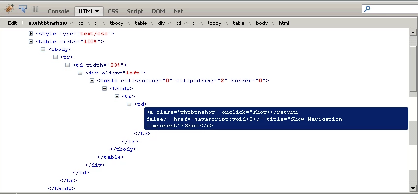 I am using Robohelp 7 and exporting to WebHelp to use on an internet page. When clicking the help icon from my internet page, I am displaying a specific page within my Robohelp content, and not including the Table of Contents. However, at the top of my rendered page, there is a "Show" link automatically being displayed. If you click that link, you then get the full Table of Contents. I do not want that "Show" link to be displayed at all. But I can't figure out where it is coming from.