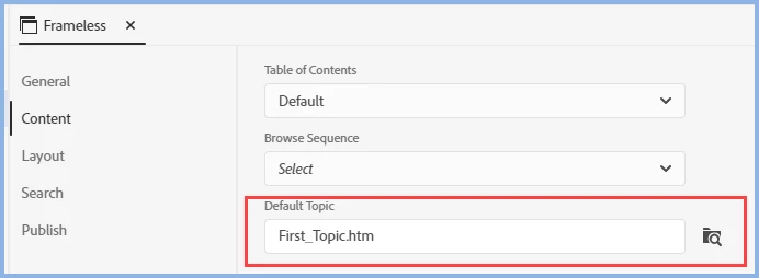 How to set default first topic (RH 2019, new UI)