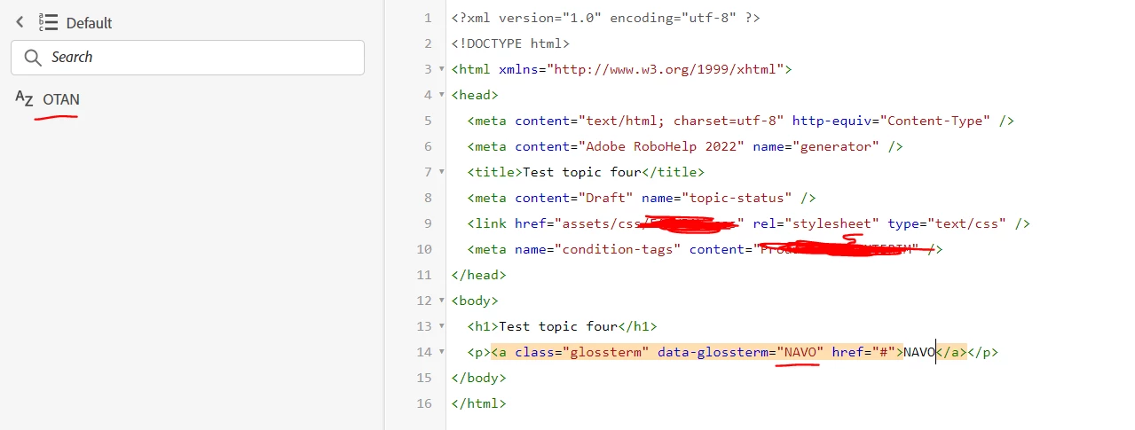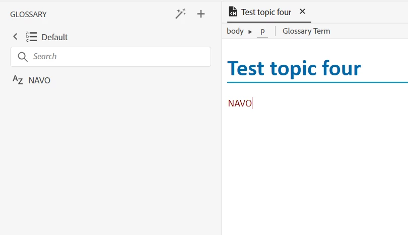On a side note, I don't really get why data-glossterm is mapped to the glossary term instead of the glossary ID ('Default_NAVO').
