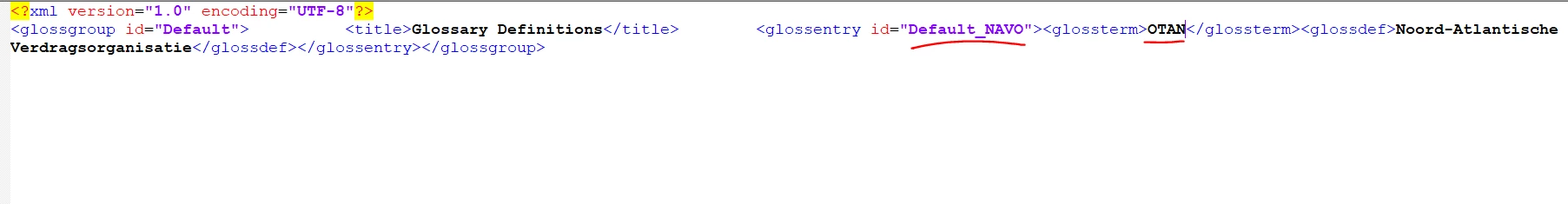 The problem is that glossary terms often also need to be translated. For example, the term NATO is translated as NAVO in Dutch and OTAN in French.