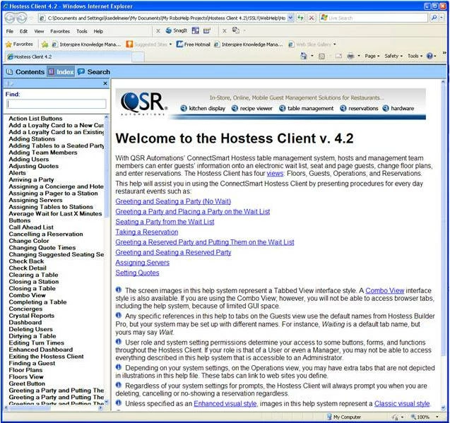 However, a co-worker in QA noticed that when it opens in the product, the index does not show. The entire WebHelp folder goes in the project (unlike all of my other help projects, which use a .chm that is the lone file pulled by Development).