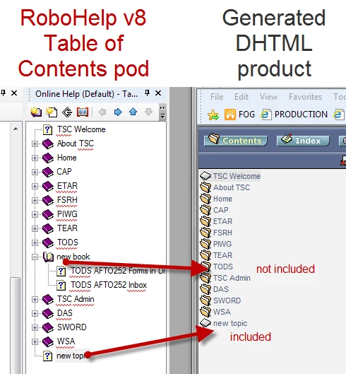 New books and topics don't appear in the ToC after generated in DHTML (RoboHelp v8)