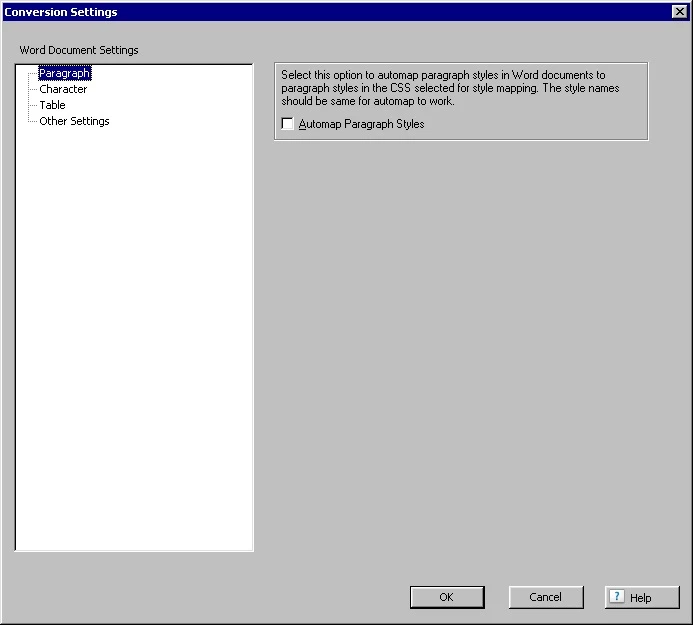 - In the Conversion Settings dialog box, in the Paragraph group, select the paragraph style on which to base pagination.
